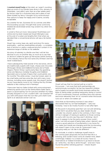 Stuart has a wine, beer, ale, spirit and stout for every eventuality – well two eventualities actually – a complete lack of alcohol or vastly a reduced alcohol content in his extensive range of drinks on his website.