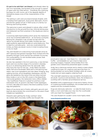 The Jack Russell Inn is becoming more popular since its 2017 opening and general manager Ross worked with the property through Covid, and he has overseen its journey into sustainability; its own bottled water, power, heat source and suppliers.
