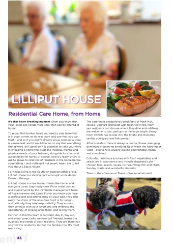 is in your corner, an honest team and one that you can trust – and as if you didn’t already know, residential care is a minefield, and it would be fair to say that everything that glitters isn’t gold! So it is essential to take your time in choosing a home that suits the medical, mental and physical needs of your beloved, alongside location and accessibility for family of course. And it’s really smart to ask to speak to relatives of residents in the home before committing – and nothing if not smart, here I am to tell you about Lilliput House!