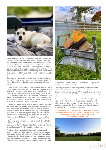 vangear.co.uk | uk.yeti.com | uk.snowpeak.com dartmoorwhiskydistillery.co.uk | dorsetnectar.co.uk Grounded Coffee P58 | Isle View – P50 kinlochlevencaravans.com