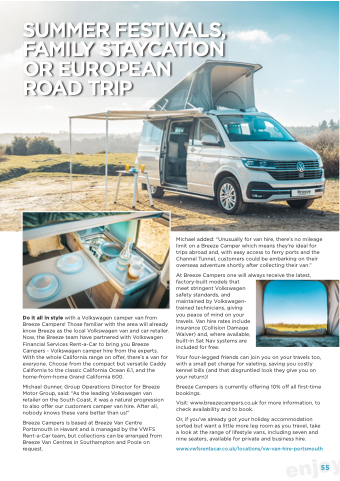 Michael Gunner, Group Operations Director for Breeze Motor Group, said: “As the leading Volkswagen van retailer on the South Coast, it was a natural progression to also offer our customers camper van hire. After all, nobody knows these vans better than us!”