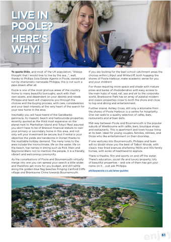 To quote Dido, and most of the UK population; “Always thought that I would love to live by the sea...”, well, thanks to Phillipa Sole Estate Agents in Poole, owned and run by charismatic namesake Philippa, this is not such a pipe dream after all.